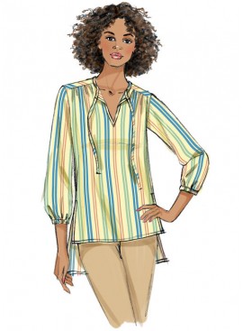 TOP Y TÚNICA (J. MUJER): Top y túnica para pasar por encima de la cabeza, con canesú delantero fruncido, escote en V con opciones de cierre, variaciones de línea en mangas y dobladillo.