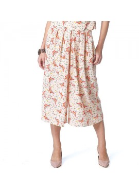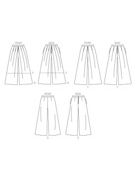 | JUPE-CULOTTE (J. FEMME): Jupe-culotte à ceinture, poches latérales et fermeture à glissière dos. A, B, C: Variations de pli. D: Semi-ajustée. Créé pour des tissus tissés de poids léger à moyen. |