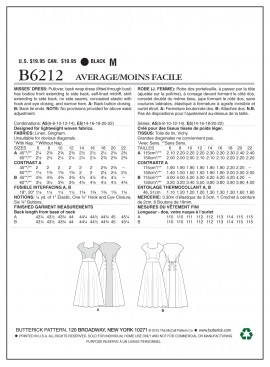 Les modèles de ce patron Butterick B6212 Copyright McCALL’S® Company, NY“ sont: