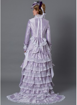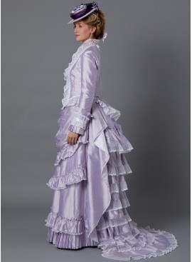 | DÉGUISEMENT (J. FEMME): Veste A ajustée, entoilée de triplure, boutonnée devant, baleinée, à manches en deux parties, et ligne d’ourlet en forme. Jupe B entoilée de triplure, à fermeture à agrafe. Dos de la jupe à plis et fronces, détail de nœud. Les deux modèles ont des galons achetés. |